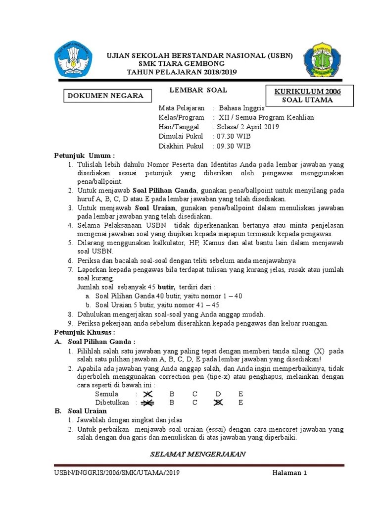 Latihan soal usbn bahasa inggris smk th 2018 soal un smk 2020 (usbn. Latihan soal usbn bahasa jawa smk tahun pelajaran 2018/2019 kali ini. Latihan soal usbn bahasa jawa sekolah menengah kejuruan tahun pelajaran 2018/2019 kali ini bersumber dari soal usbn bahasa jawa sekolah menengah kejuruan . Salam sobat guru indonesia, berdasarkan pos un tahun 2018 bahwasanya ujian sekolah . Kompetensi keahlian (ukk), ujian sekolah berstandar nasional (usbn), dan ujian.